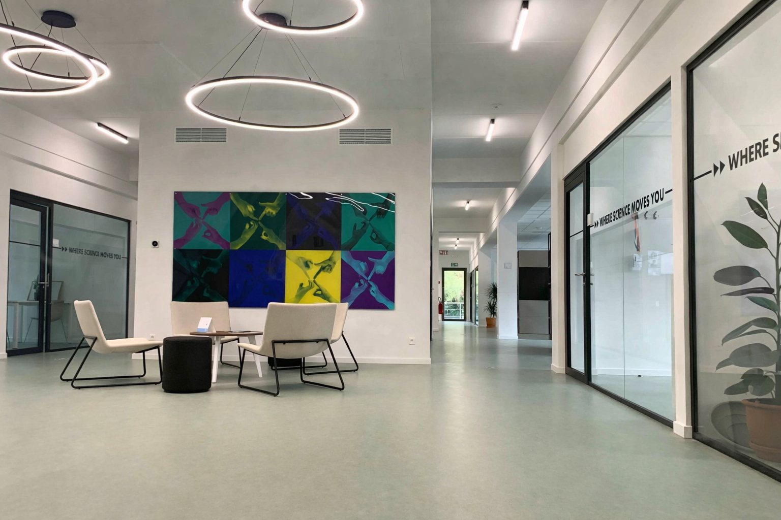 Beide bestaande gebouwen werden grondig gerenoveerd en samengevoegd tot één logisch geheel, met een nieuwe hoofdingang in de oksel van de twee volumes. Om voldoende ruimte te voorzien voor het uitgebreide programma, werd bovenop gebouw V een extra bouwlaag toegevoegd. Binnenin is het gebouw flexibel en functioneel ingericht: naast kantoren zijn er consultatieruimtes, oefenzalen met revalidatietoestellen én vijf hoogtechnologische labo’s. Die bieden studenten en artsen de mogelijkheid om geavanceerd onderzoek te voeren naar revalidatietechnieken, onder meer voor mensen met MS of diabetes en kinderen met ontwikkelingsstoornissen.